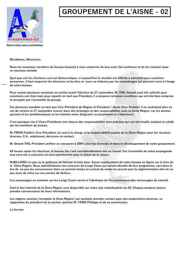 Messieurs les Présidents des sociétés du Groupement de l'Aisne,