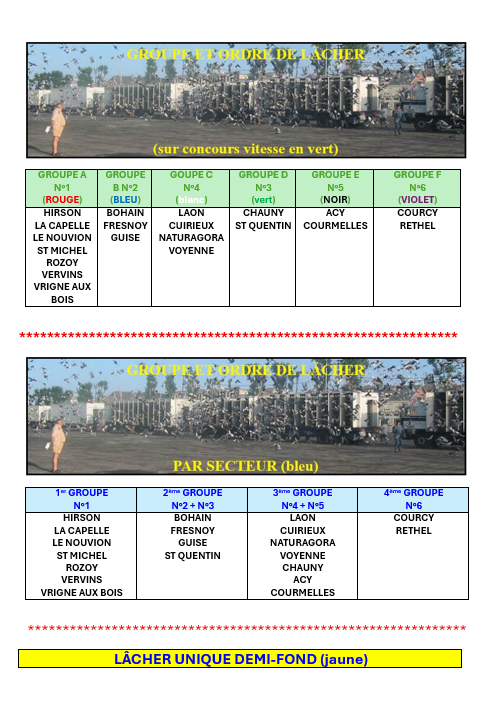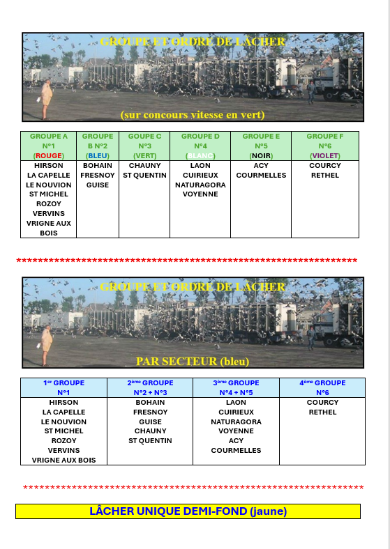 Groupes des lâchers